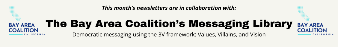 As we touched on last week, the BAC's library uses the 3Vs framework that was developed by renowned messaging expert Anat-Shenkar Osario and team at ASO Communications. These message frameworks have been tested with real voters and their team is constantly iterating and improving them. If you'd like to learn the latest, you can join their Freedom Over Fascism Movement Briefing on October 22nd.